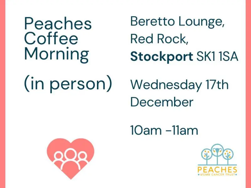 Tuesday 7th October, 11am-12 noon, online Listen, talk and sharePeaches Coffee Morning Support Group aims ...